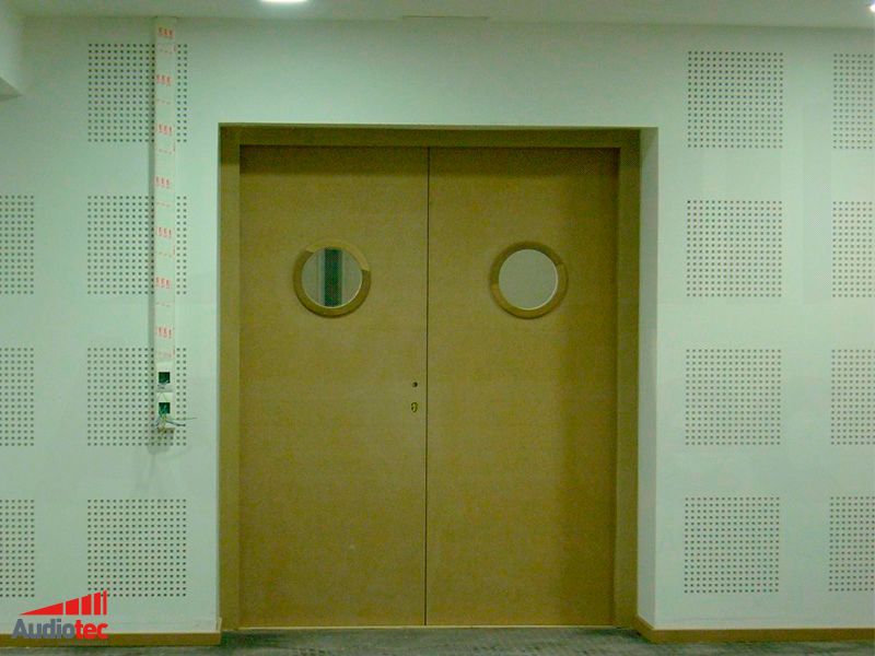 Audiotec diseña, fabrica e instala puertas acústicas de modo que se pueden suministrar con unas dimensiones y acabado final adecuados a cada proyecto acústico y a las necesidades de cada cliente.