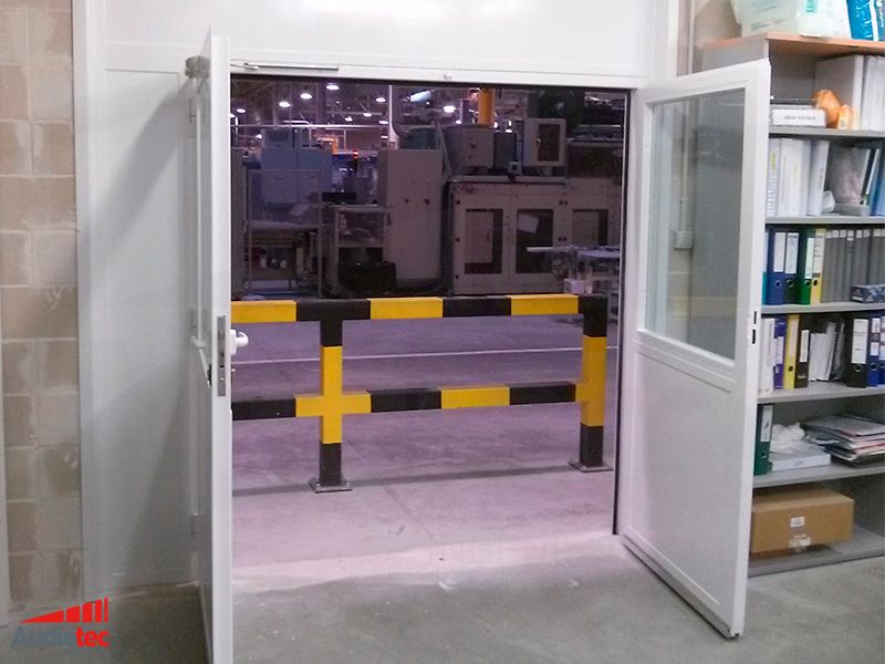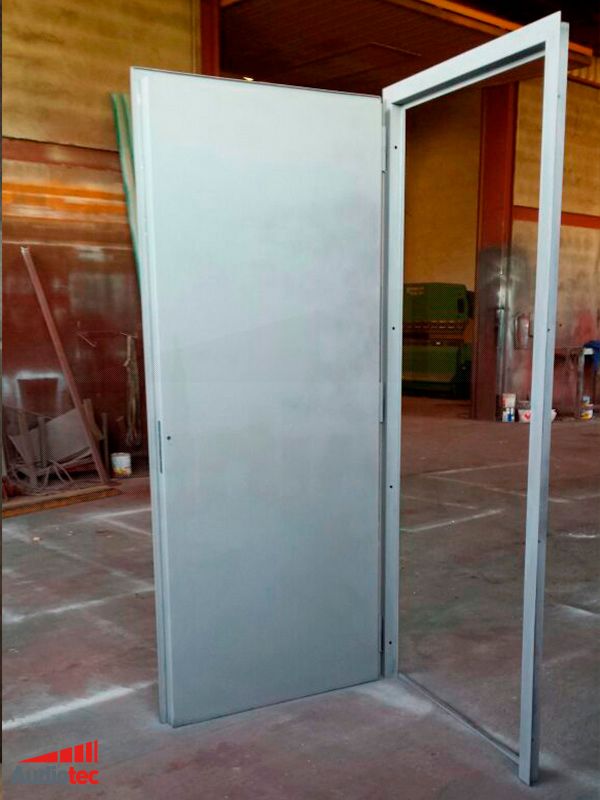 Las puertas acústicas de metal DOORTEC de AUDIOTEC están formadas por un marco tubular de acero y una hoja o dos hojas rellenas con un núcleo de componentes fonoaislantes y fonoabsorbentes.